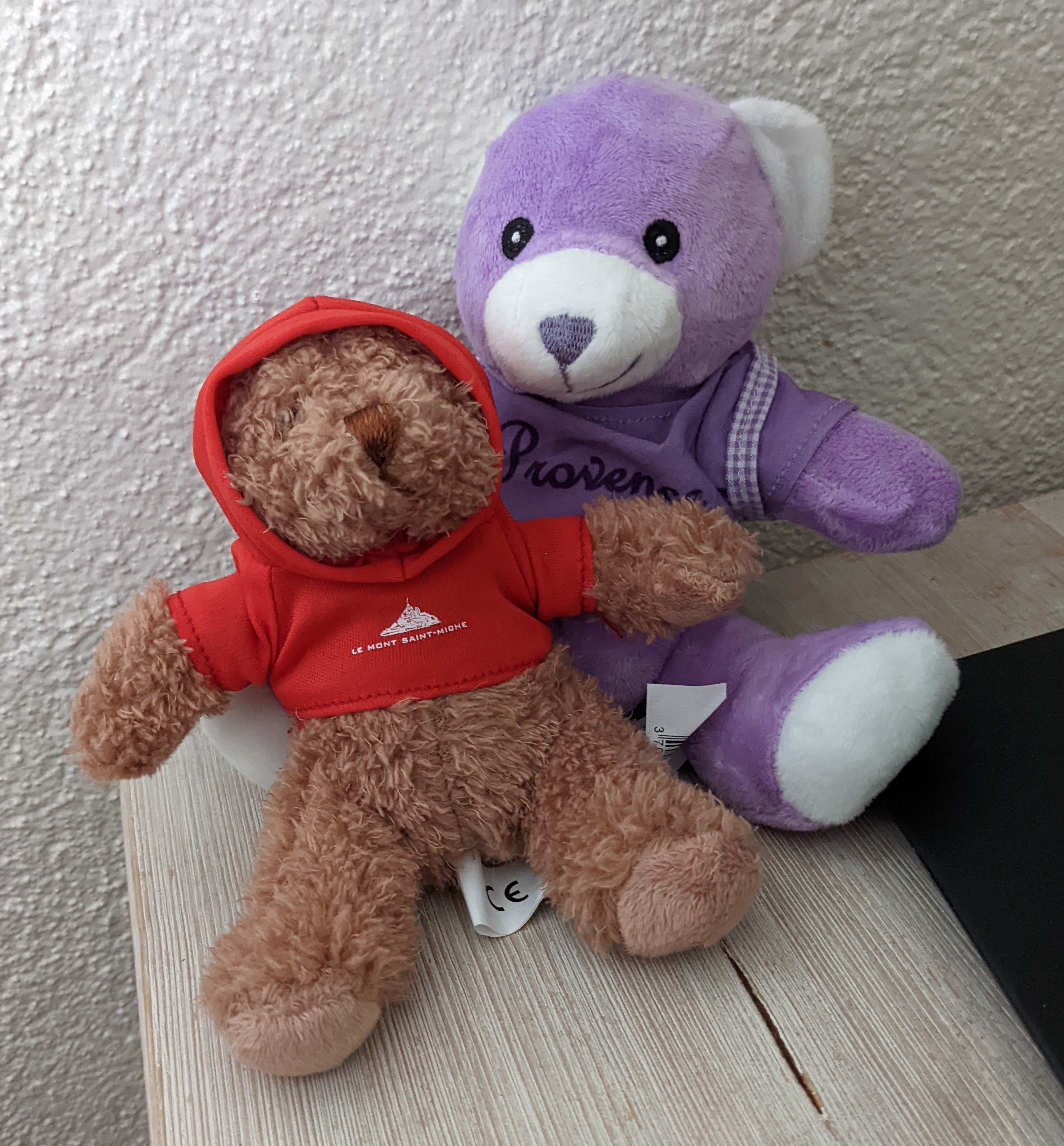 -Saying you weren’t coming home with souvenirs but being a sucker for teddy bears at Mont Michel…and Valensole.