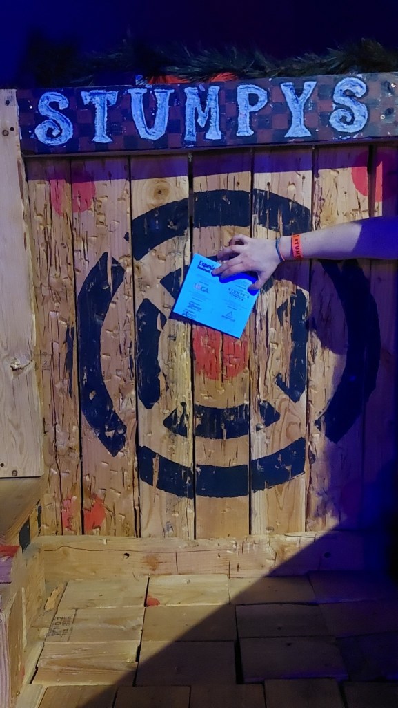 Stumpy’s Hatchet House is located in Green Brook on Route 22. We’ve always drove past it, but never went. We ended up going on Saint Patrick’s Day, they had a Glow Event, and had black lights scattered. There is no stress reliever that’s like throwing hatchets all night and a great arm/shoulder work out! The venue was much bigger than I thought, decorated to theme well, and had giant games like Jenga and Connect Four to also play! If you want a party, this is a place to go to.