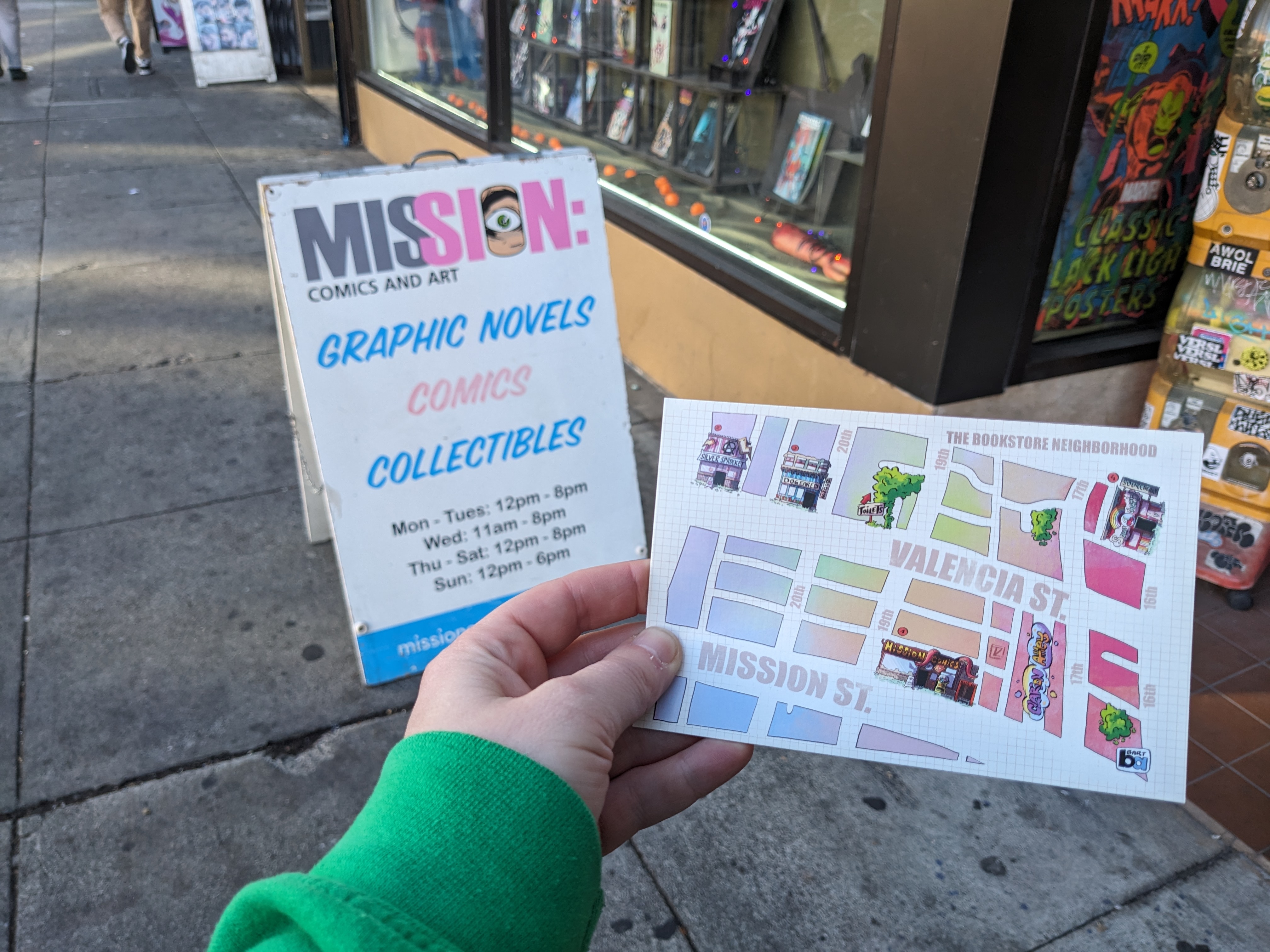 This is such a great spot for comic book lovers. We like to think we have good taste and a pretty eclectic collection ourselves, so we were impressed by the shop’s excellent selection of books. One thing I especially loved was the postcard they offered, which promotes and lists other comic book shops in the area. It’s such a thoughtful touch that really fosters a sense of community among local comic enthusiasts.