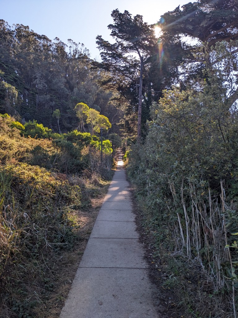 We began our journey at the Princess Diaries High School, located near the iconic Lyon Street Steps, which marked the start of Lover’s Lane. This charming trail, with its paved path, made the half-mile walk both easy and enjoyable. The route ends at the historic Civil War Parade Ground, just a short distance from the Walt Disney Family Museum—perfect if you want to pair the hike with a visit to the museum.