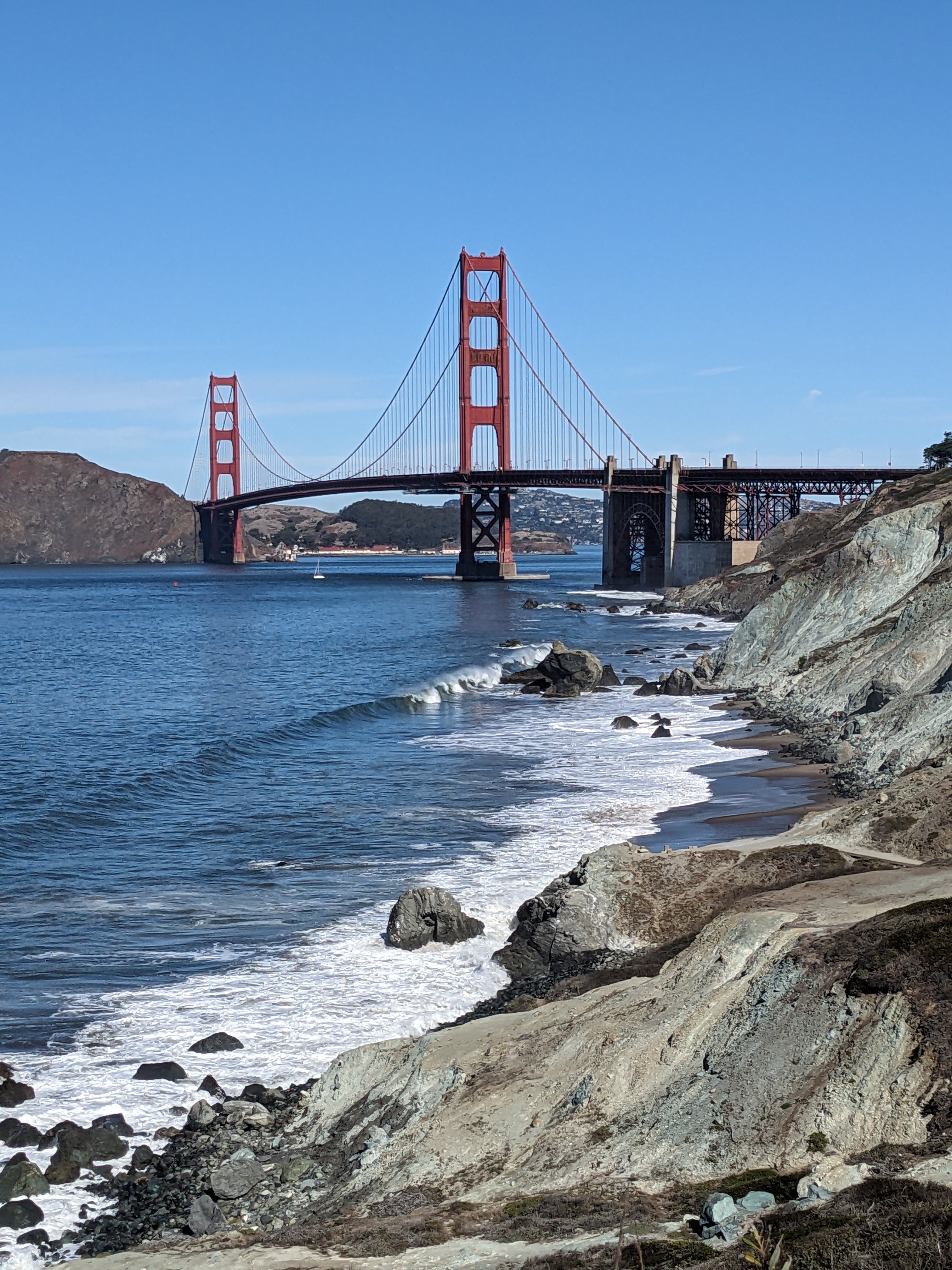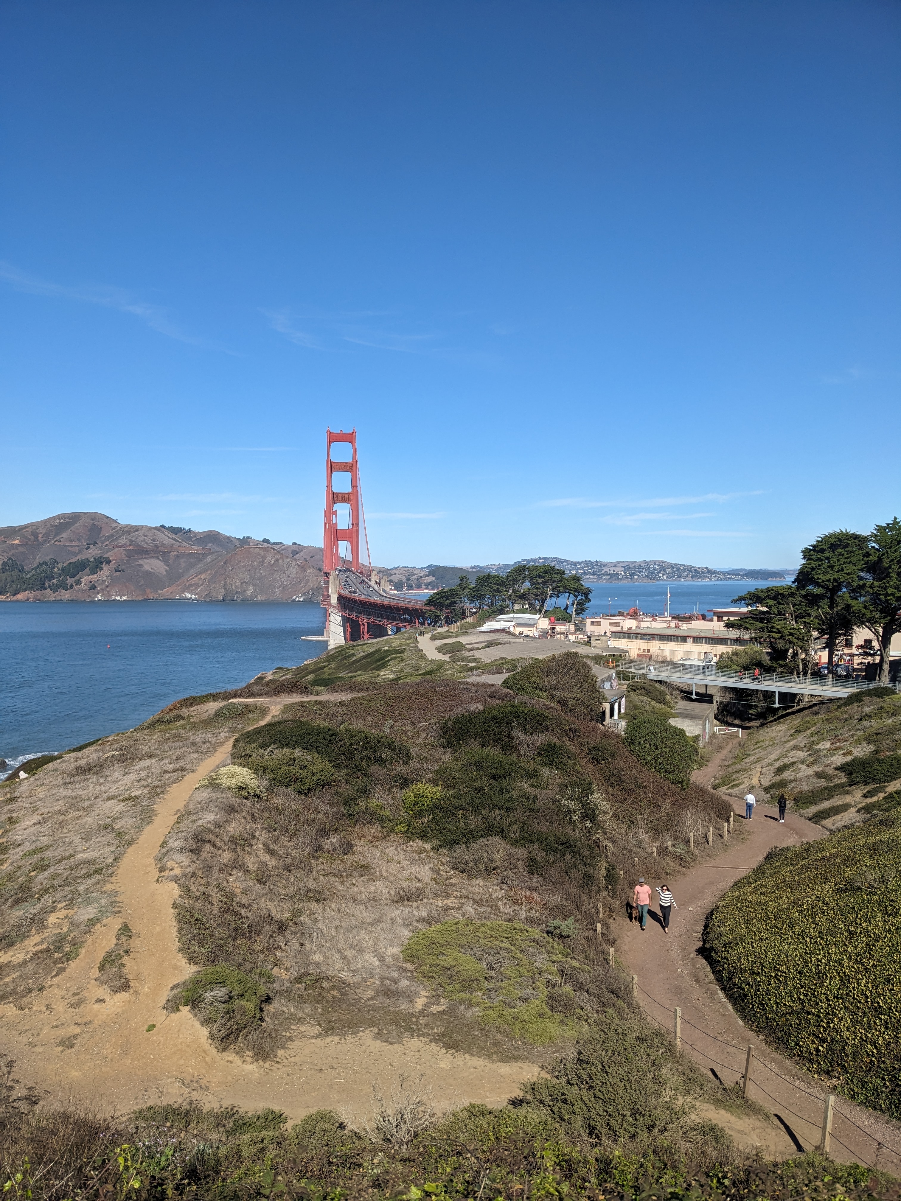 For this hike, I chose to start farther from the Golden Gate Bridge, beginning at Battery Crosby. The logic behind this is wanting to walk toward the bridge to get closer to it with each step. The trail stretches just shy of a mile, winding along the coastline with stunning ocean views. The path alternates between soil trails and wooden steps. At the end of our hike, we stopped at Battery Cranston, where we enjoyed a well-deserved lunch with a view of the Golden Gate Bridge in the distance. A great spot to relax, eat, and soak in the Bay.