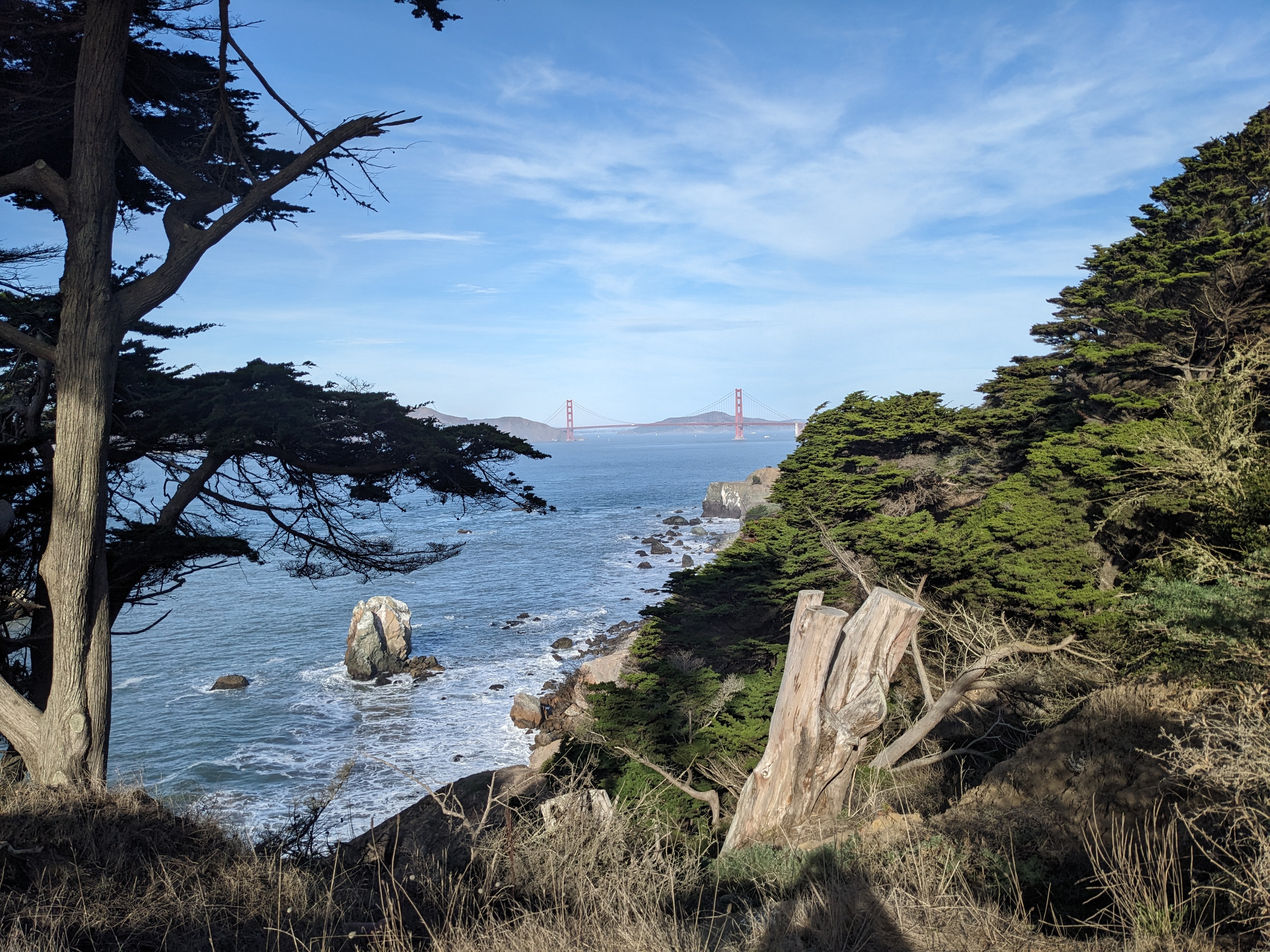 This hike combined multiple trails, starting at Lands End near the Legion of Honor Museum. We went down to Battery AMTB first, which is a less frequented path with an amazing view of the Golden Gate Bridge. On Google Maps, they mention a Lands End Labyrinth rock formation, but it doesn’t exist anymore. Still, this detour felt like a secret spot. We then joined the Coastal Trail, which passes the USS San Francisco Memorial.