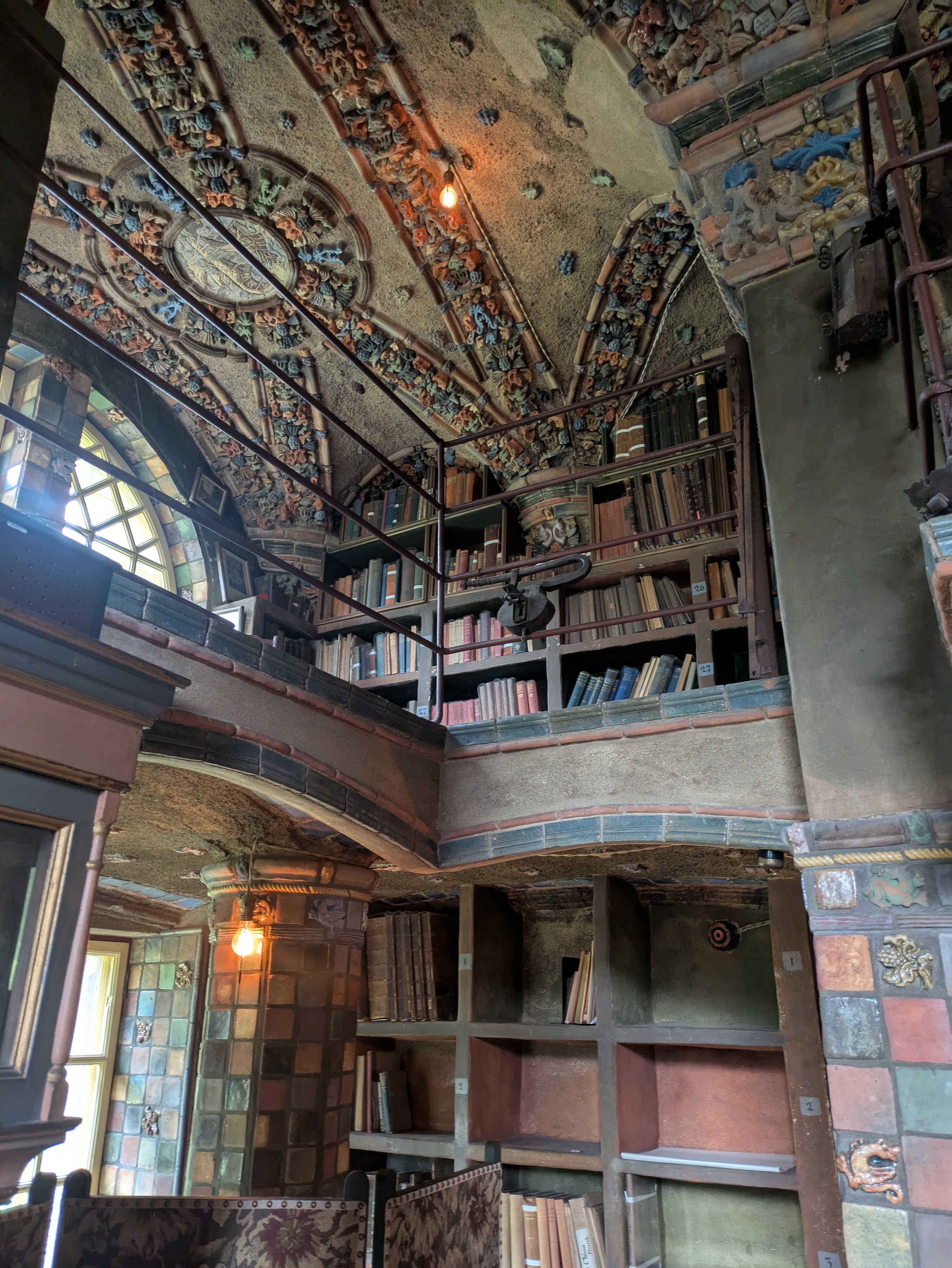 The castle served both as Henry Mercer’s home and as a showcase for his tilework and vast collections. It features 44 rooms, all constructed from concrete including built-in furniture like desks and shelves. Every room is filled with tiles from around the world, each telling a piece of a larger story. What blew me away was learning that all the concrete was mixed by hand and carried in buckets.