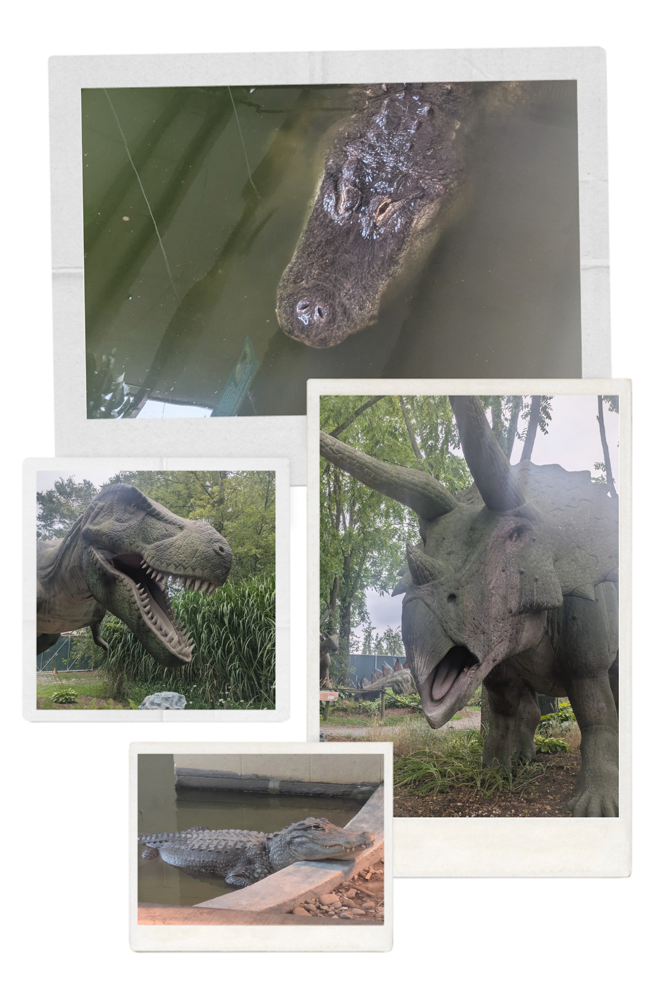 They have an outdoor animatronic dinosaurs exhibit where you wander their prehistoric path as dinosaurs come to life. Their animatronic dinosaurs are life size, roar, spit, and bellow as you pass them. They create each one keeping them anatomically accurate based on current paleontological information.