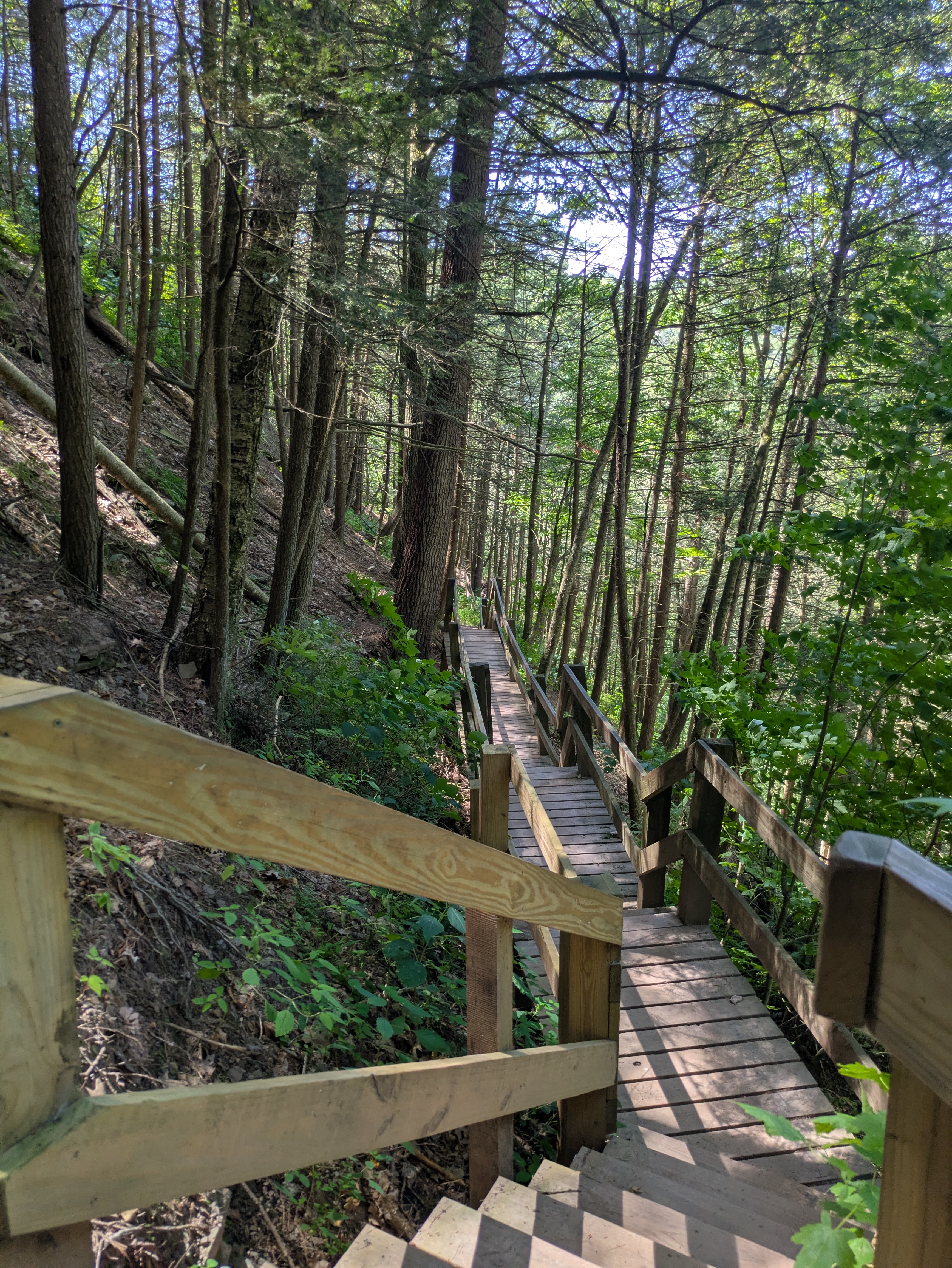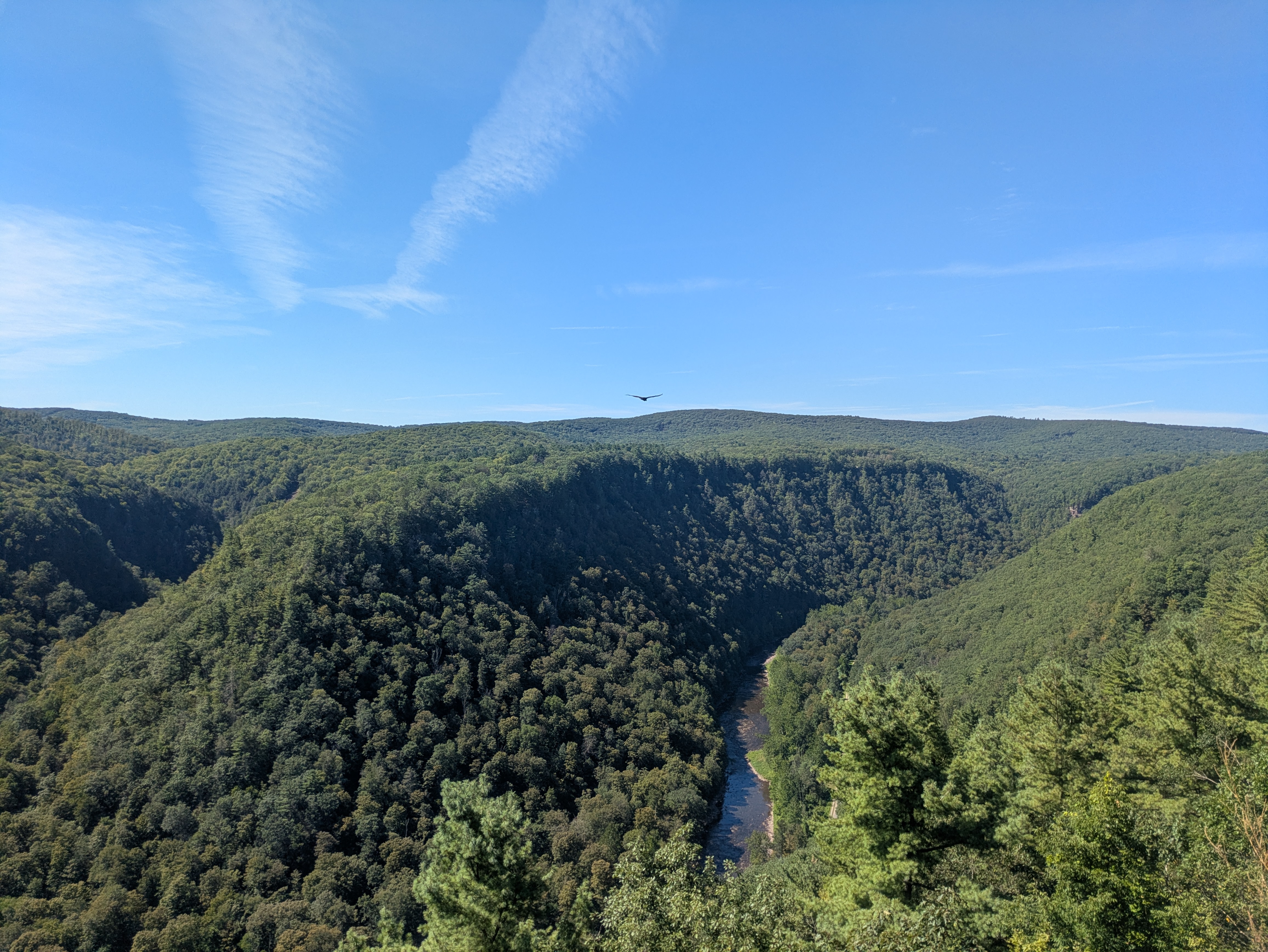 When we first plugged “Pennsylvania Grand Canyon” into the GPS it actually took us to the Colton State Park Overlook: Colton Rd, Wellsboro, PA 16901 West Rim and not the visitor center at Leonard Harrison State Park. The overlook at Colton was stunning—we had an amazing view. But the GPS route assumed we’d be hiking down into the canyon, crossing Pine Creek, and hiking back up to reach the visitor center… which wasn’t the plan. So please be mindful of that.