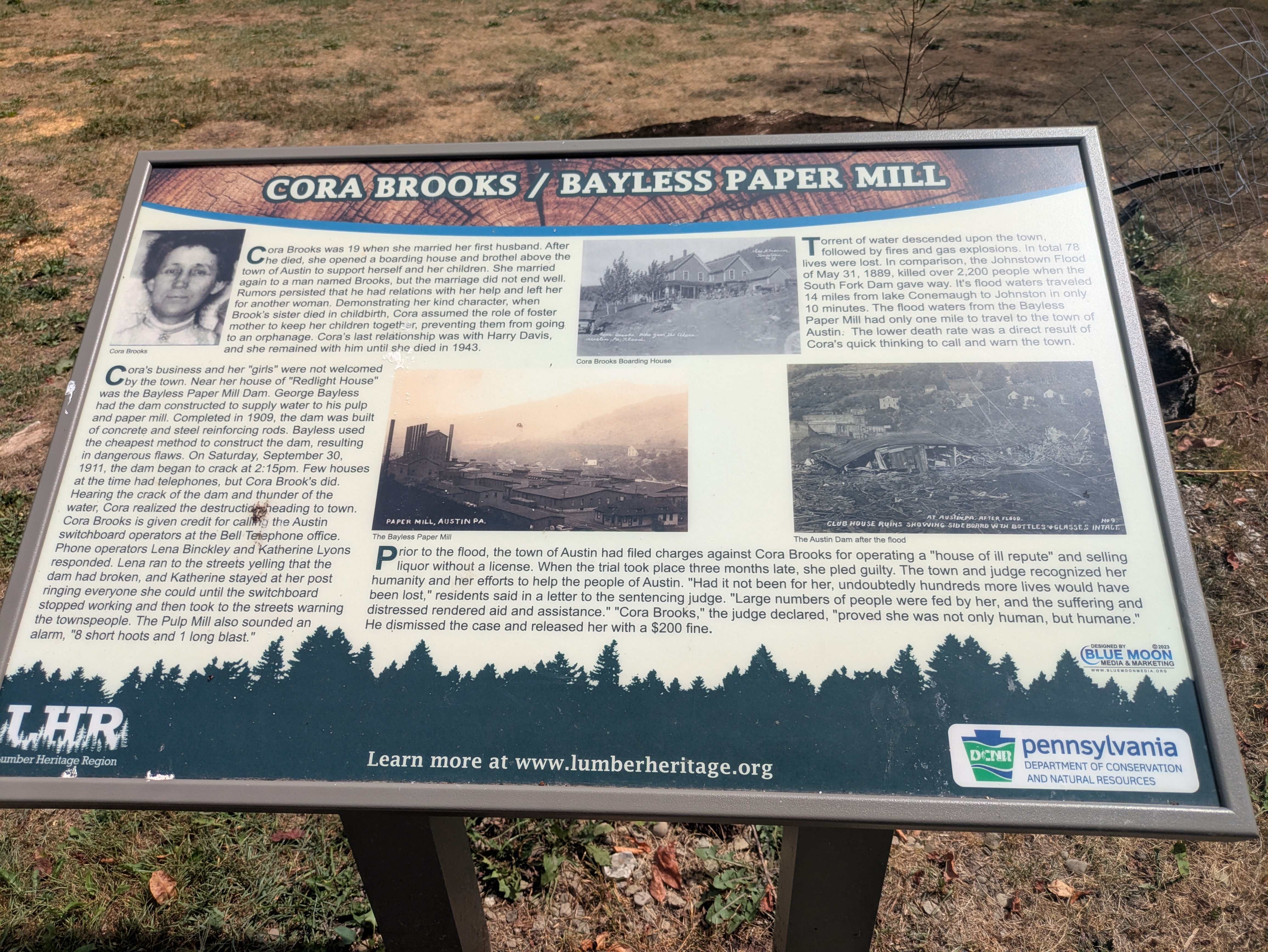 Austin Dam: Another 15ish minutes away from Coudersport. The Austin Dam was built in 1909 and a few years later in 1911 failed resulting in 78 deaths; making it the second worst dam break in PA.