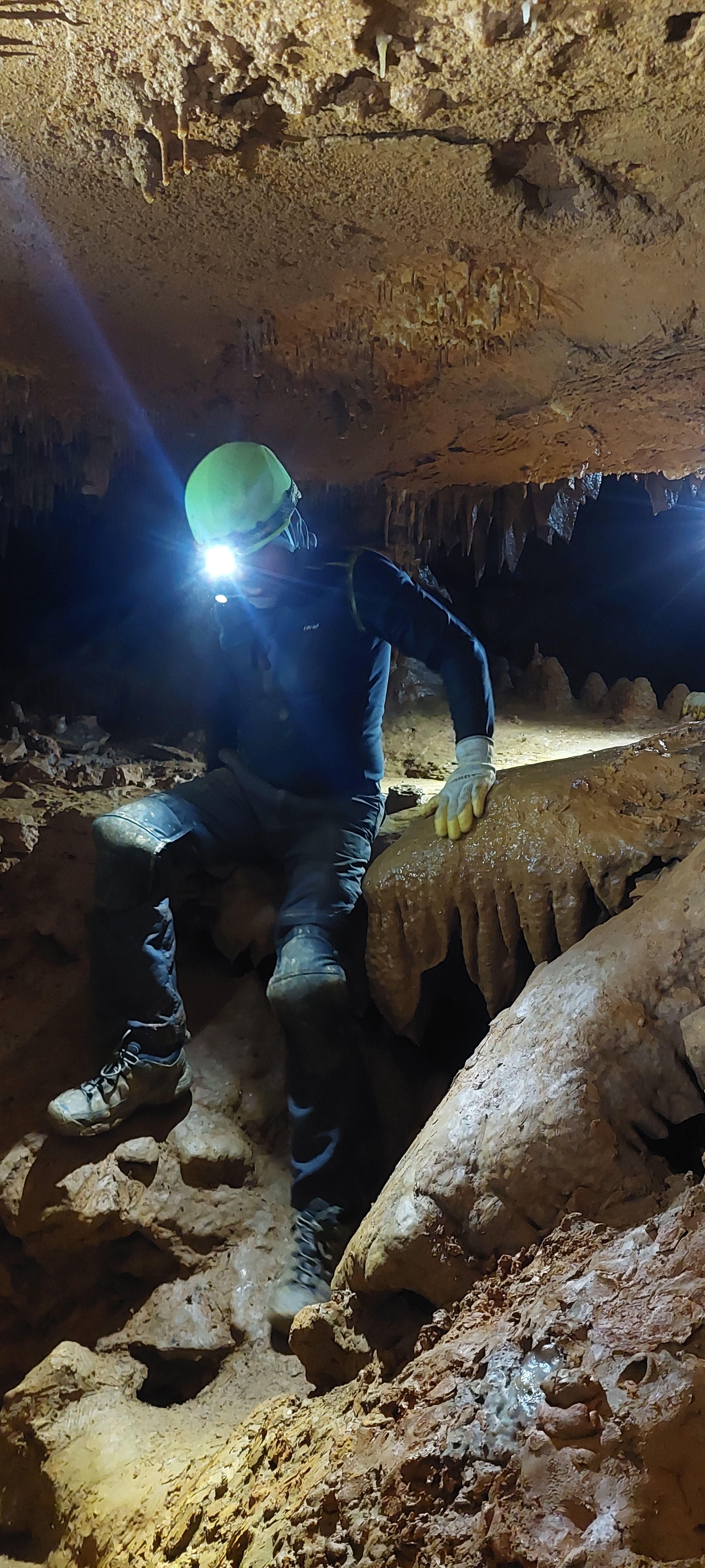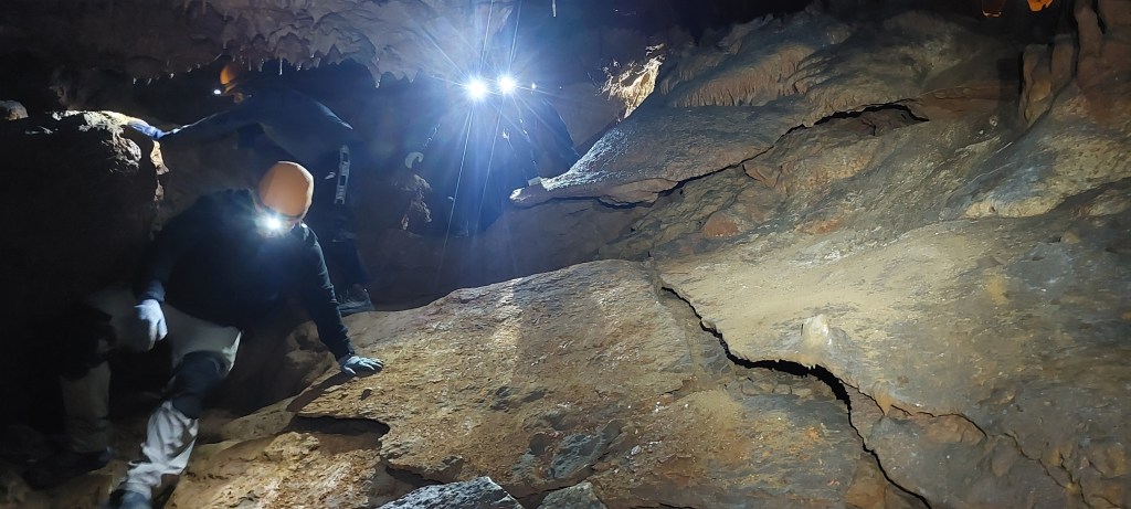There were a few moments during the tour when we crossed paths with the regular walking groups. I have to admit that we felt pretty special in our helmets, headlamps, and full spelunking gear. It was like we were part of some secret expedition. Crawling under railings and slipping into blocked-off passages not meant for the walking tour made the whole experience feel even more “behind the scenes,” like we were exploring parts of the cave reserved just for us.