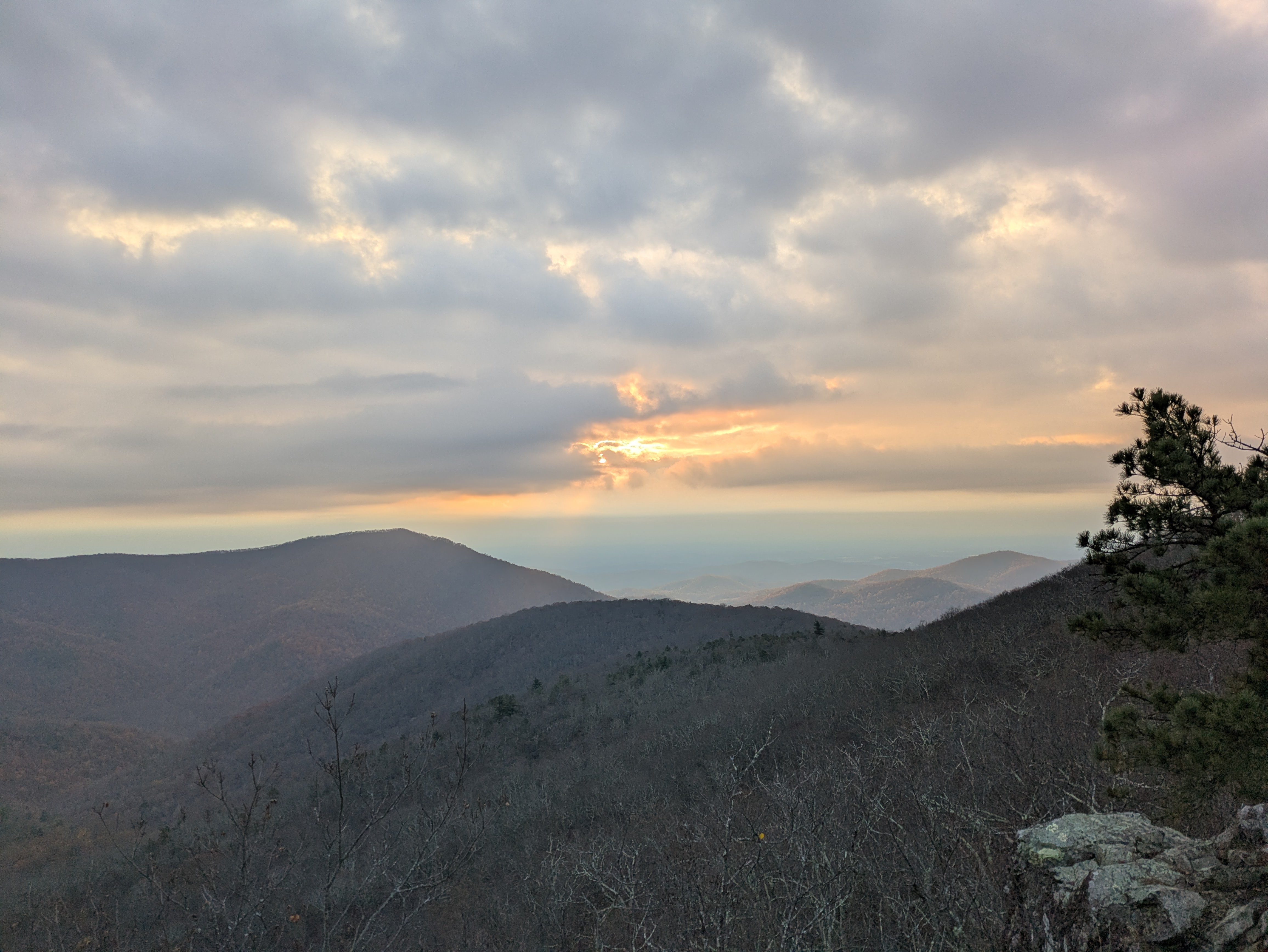 Since we hadn’t hike Bearfence before we parked ourselves on rocks that were not the true summit. It was a nice flat rock to sit on, but the view was still within the trees. After we had more daylight I hiked a bit further and found the true summit, above the trees. This would have been the spot for the sunrise, but we were lucky since it was overcast I didn’t feel like I missed anything.